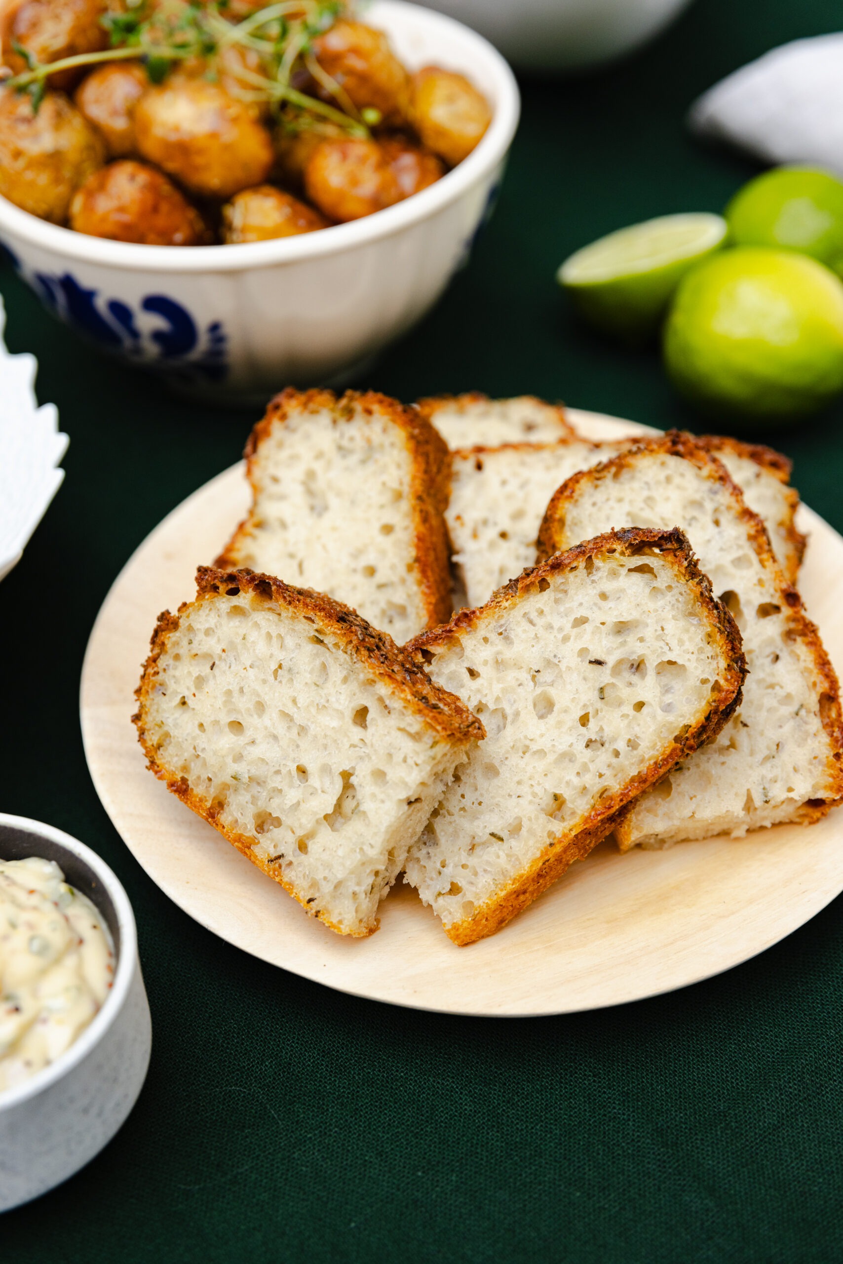 – Friskbagt focacciabrød m. hjemmelavet urtemayo