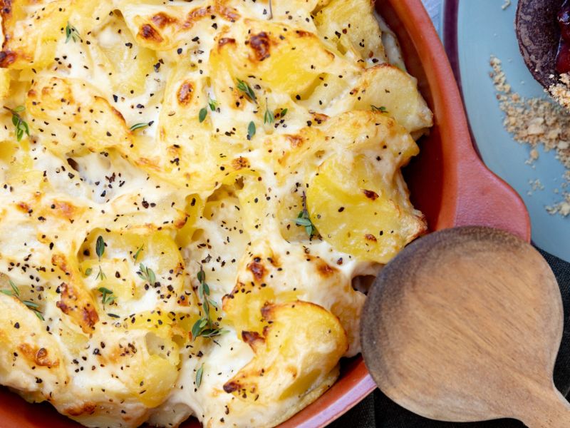 – Cremet flødekartofler m. hvidløg & knust sort peber