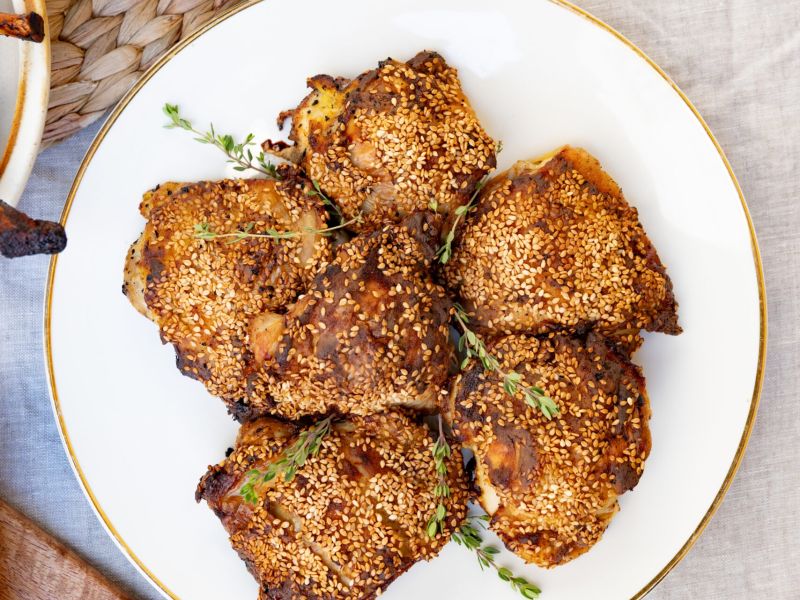 – Kylling a la Diablo m. sennep, krydret paprika & sesam