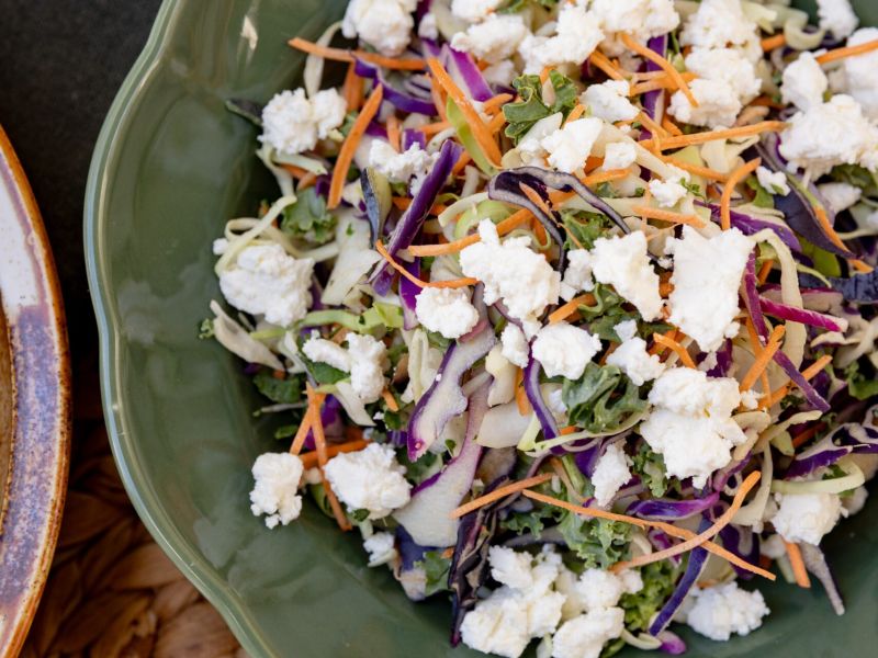 – Sprød grøn salat m. violet spidskål, cremet feta & sherry vinaigrette
