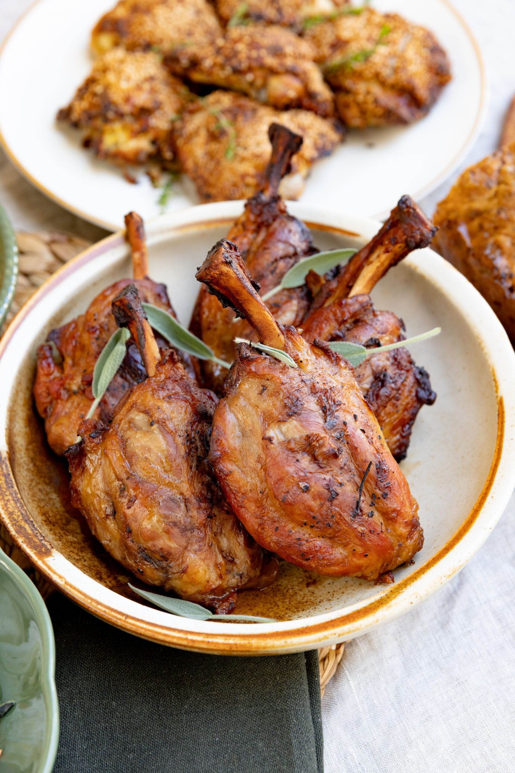 – Langtidsbraiseret spoleben i kraftig rødvinssauce & salvie