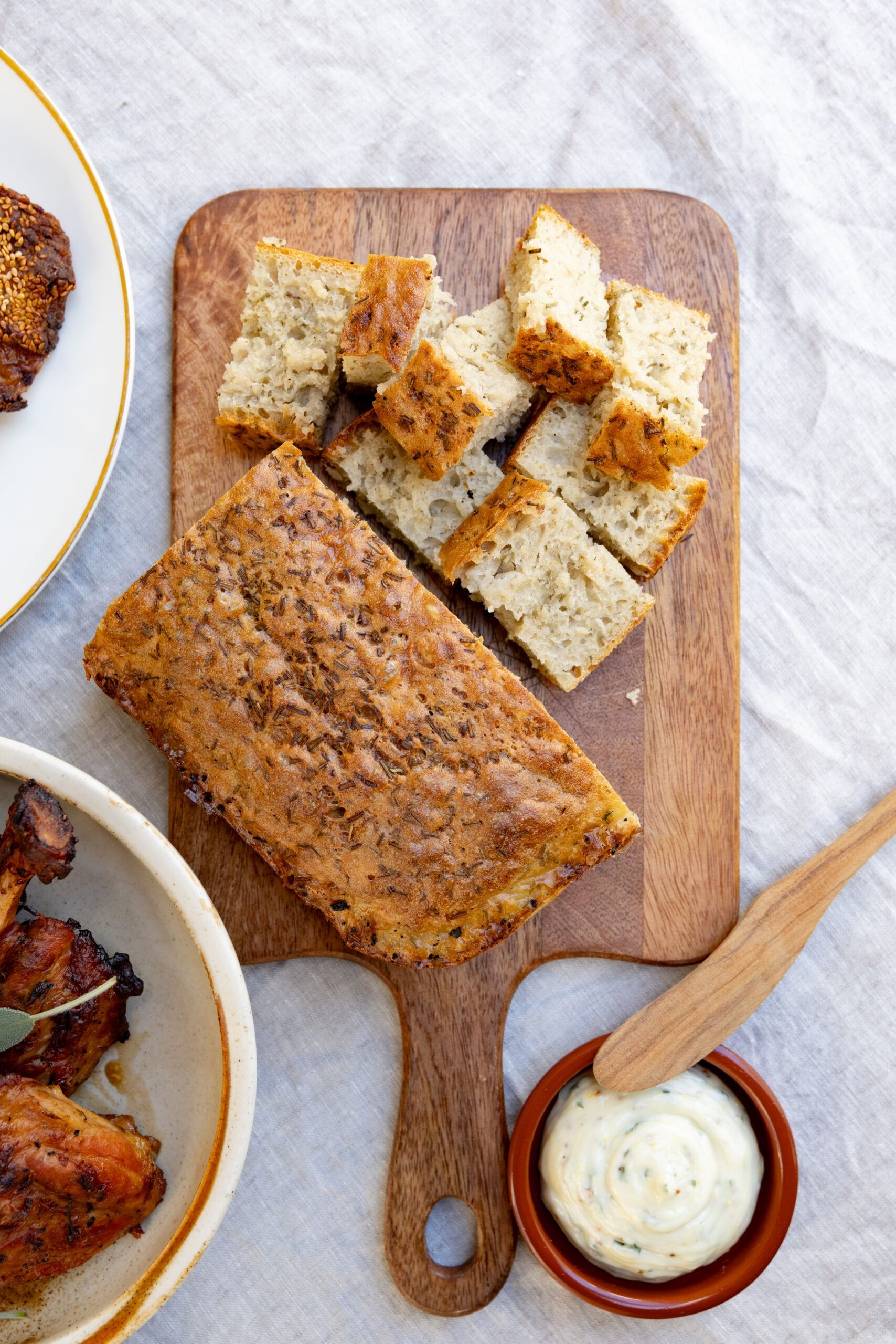 – Friskbagt sprødt focacciabrød m. havsalt & rosmarin