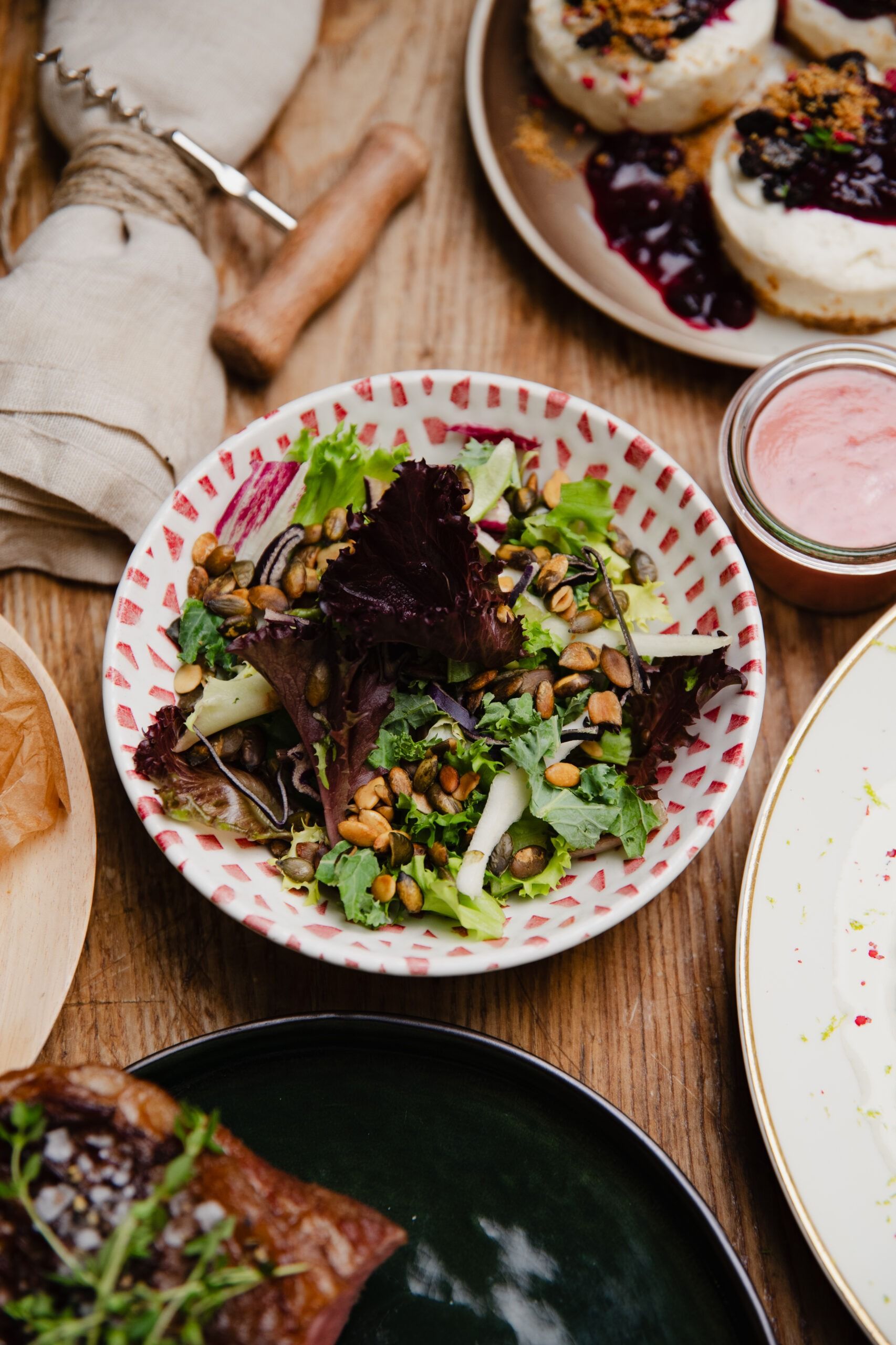 – Sprød salat m. årstidens grønt, vinaigrette & ristede græskarkerner