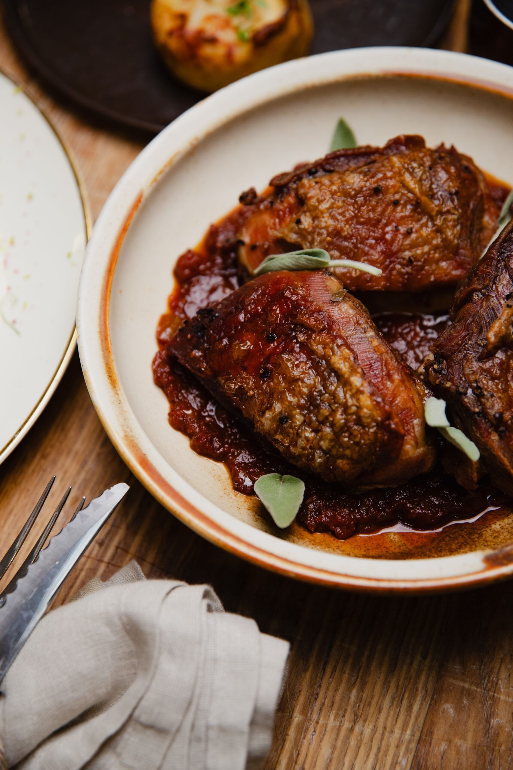 – Ovnbagt torskeryg m. basilikumpesto & små saftige tomater+40,-