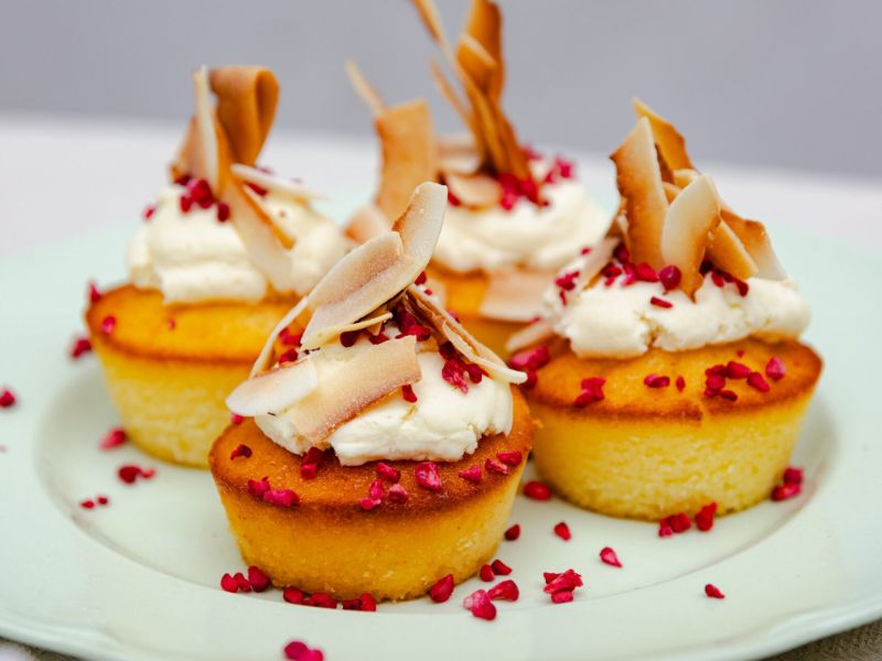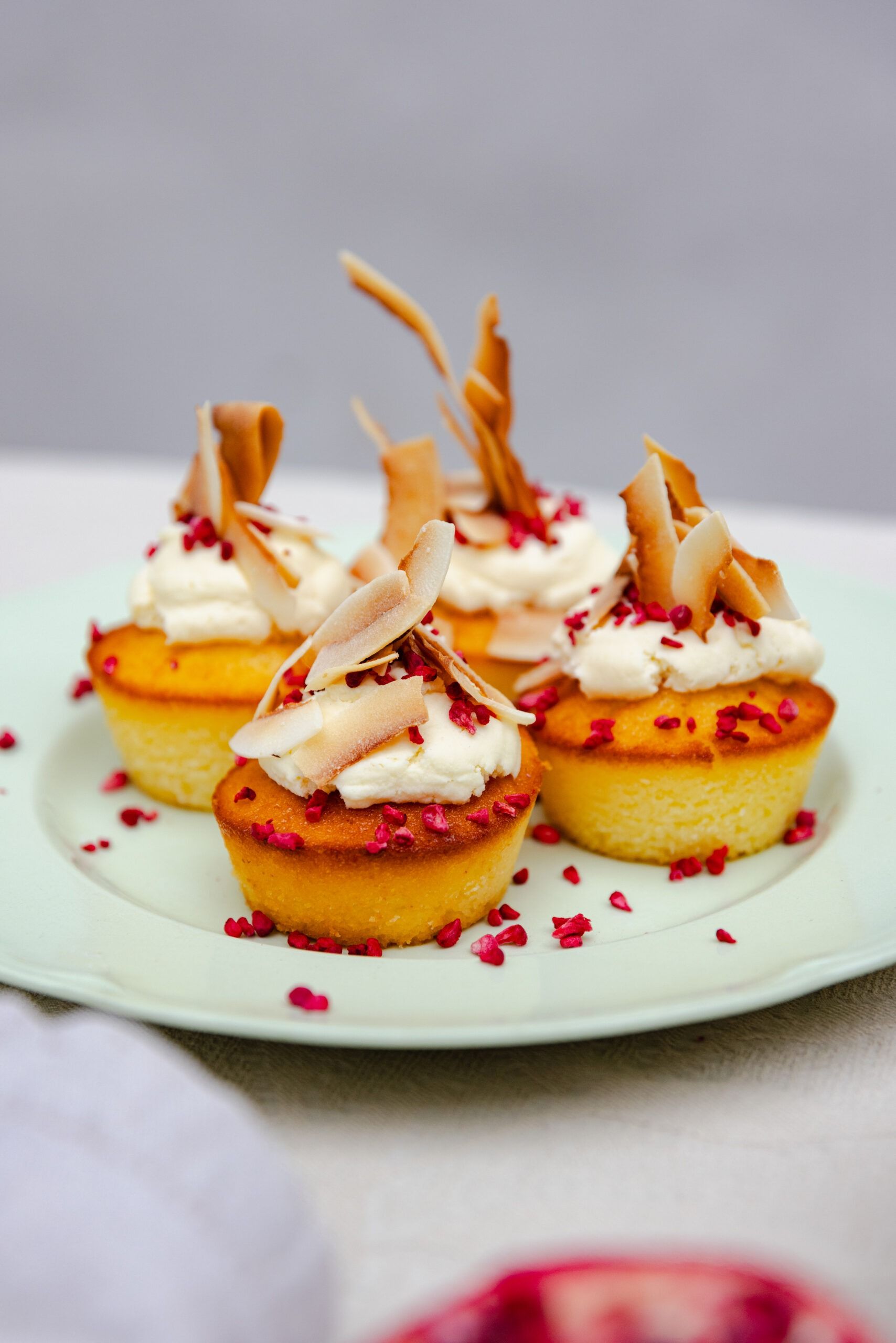 – Citronkage m. cremet skovbærcreme & ristet kokosflager