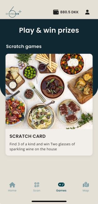 Spil med på forskellige skrabelodder og quizzes for muligheden får at vinde præmier du kan indløse på DiningSix restauranter.